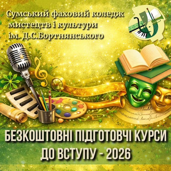 Мрієш про навчання в Сумському фаховому коледжі мистецтв і культури ім. Д.С. Бортнянського?